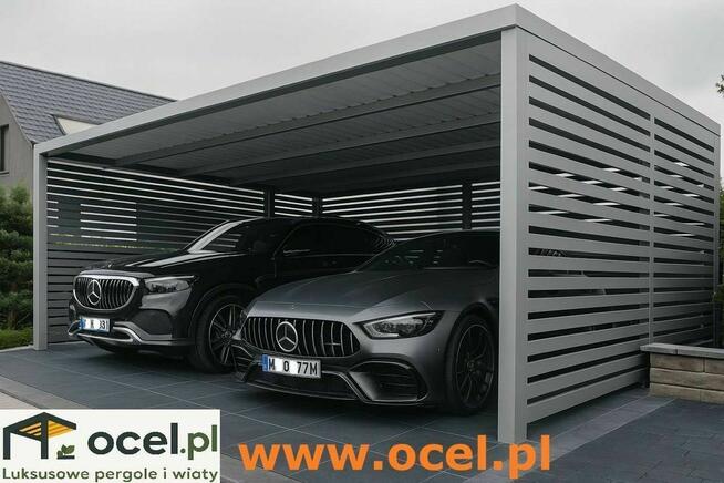 Garaż - wiata garażowa . Stalowa konstrukcja oparta na profilach zamkniętych. Malowana proszkowo w opcjach z ...