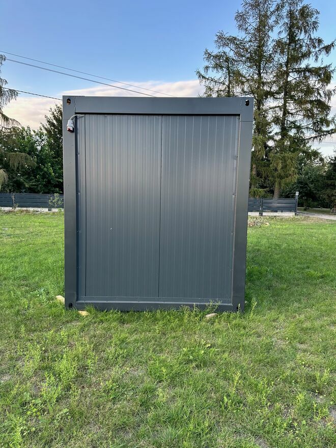 - kontener zbudowany z płyty warstwowej poliuretanowej 80 mm (ściany i dach) lamda 0,022W